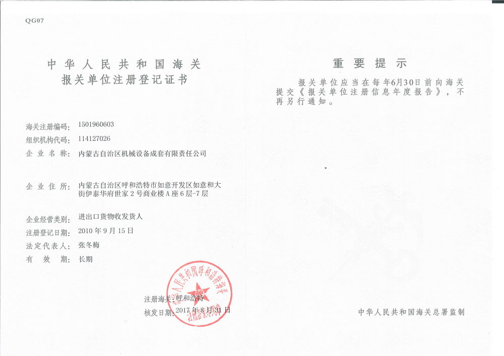 內蒙古自治區(qū)機械設備成套有限責任公司營業(yè)執(zhí)照